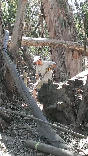 Twenty hardworking volunteers just finished replacing 100 posts and over 1000 feet of manila rope that cordoned off the viewing galleries in the Goleta Butterfly Grove. If you have not had a chance to see the Monarch butterflies fluttering around their winter home in the Eucalyptus groves on Ellwood Mesa, now is a great time to go. Not only will you see the plumbed posts and the new natural-looking rope that runs continuously around the grove, but you will also see Monarch butterflies congregating in massive colonies that roost in the canopy.