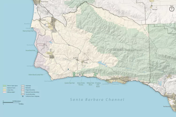 Santa Barbara County offers a diverse landscape, featuring mountains, valleys, coastlines, and woodlands, all within a compact area. The county's towns and cities provide access to parks, open spaces, and trails for the community's use.