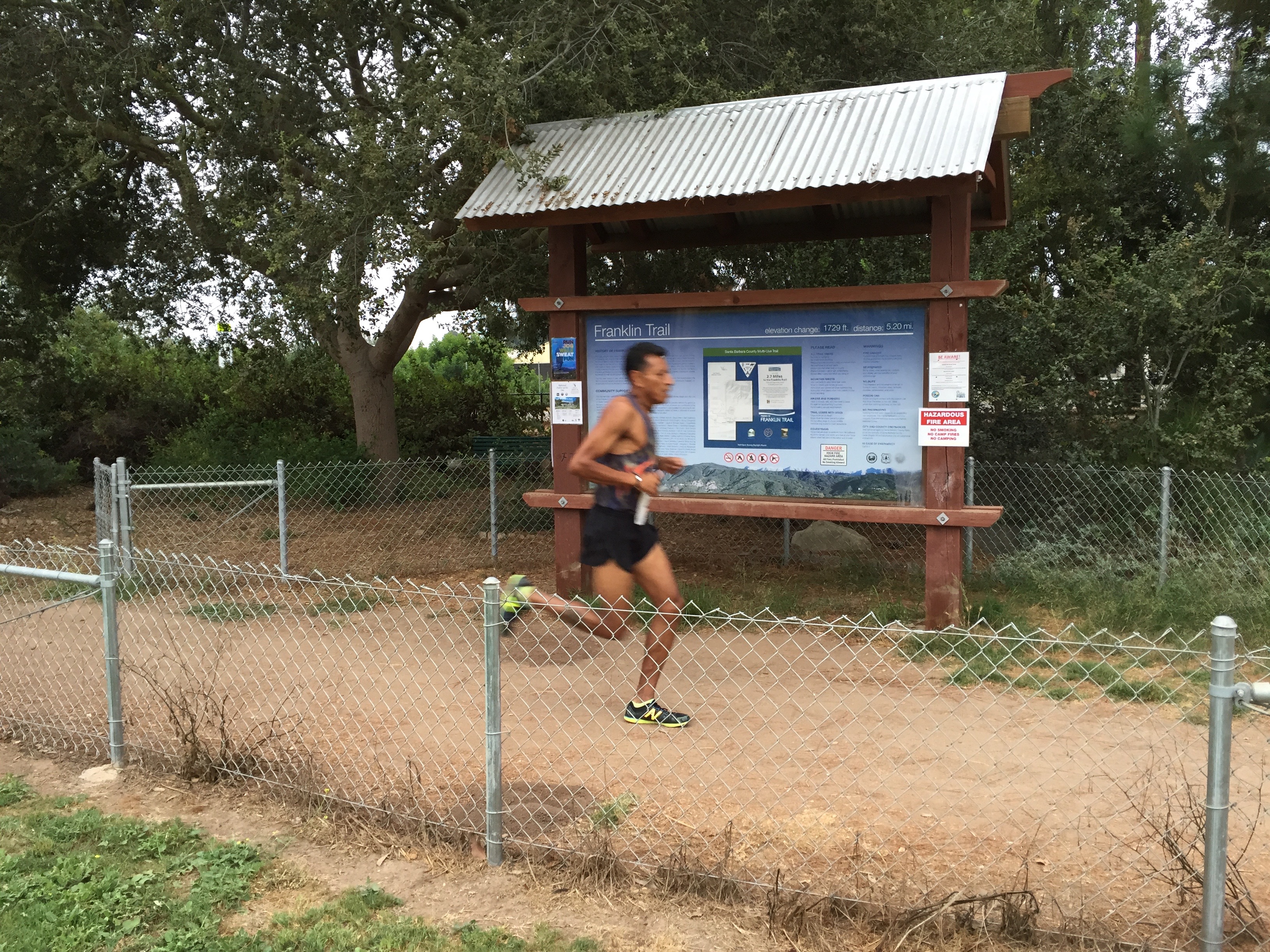We did not have to wait long for Carpinteria's Victor Centina to finish first in the 4-mile event. He completed the grueling course in 27:43 minutes. Over 30 people participated in the 4-mile race to Frank's Bench and back. The 10-mile course also followed the single track section of the Franklin Trail and then continued three more miles along the trails' winding dirt road to the five-mile turnaround point at the edge of the Los Padres National Forest.